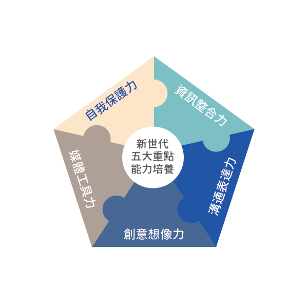 自我保護力: 網路安全、網路隱私辨識與示範。資訊整合力: 媒體識讀,真假訊息辦別。